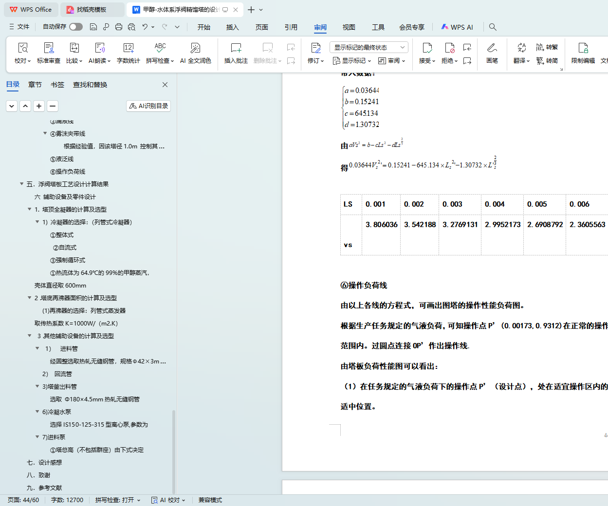 第五章浮阀塔板工艺设计计算结果…………………………47
