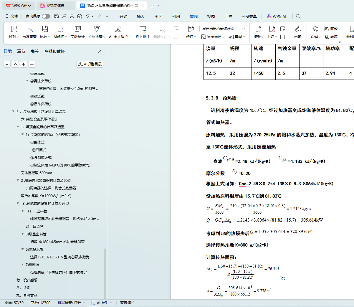 ◆5.2塔底再沸器面积的计算及选型…………………… 53