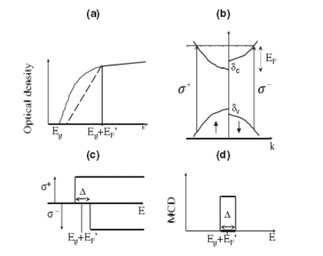 Having presented the data, we can discuss the origin of the band edge features that are observed .We begin by considering the relationship between the MCD and Faraday data presented in Fig.2.The MCD