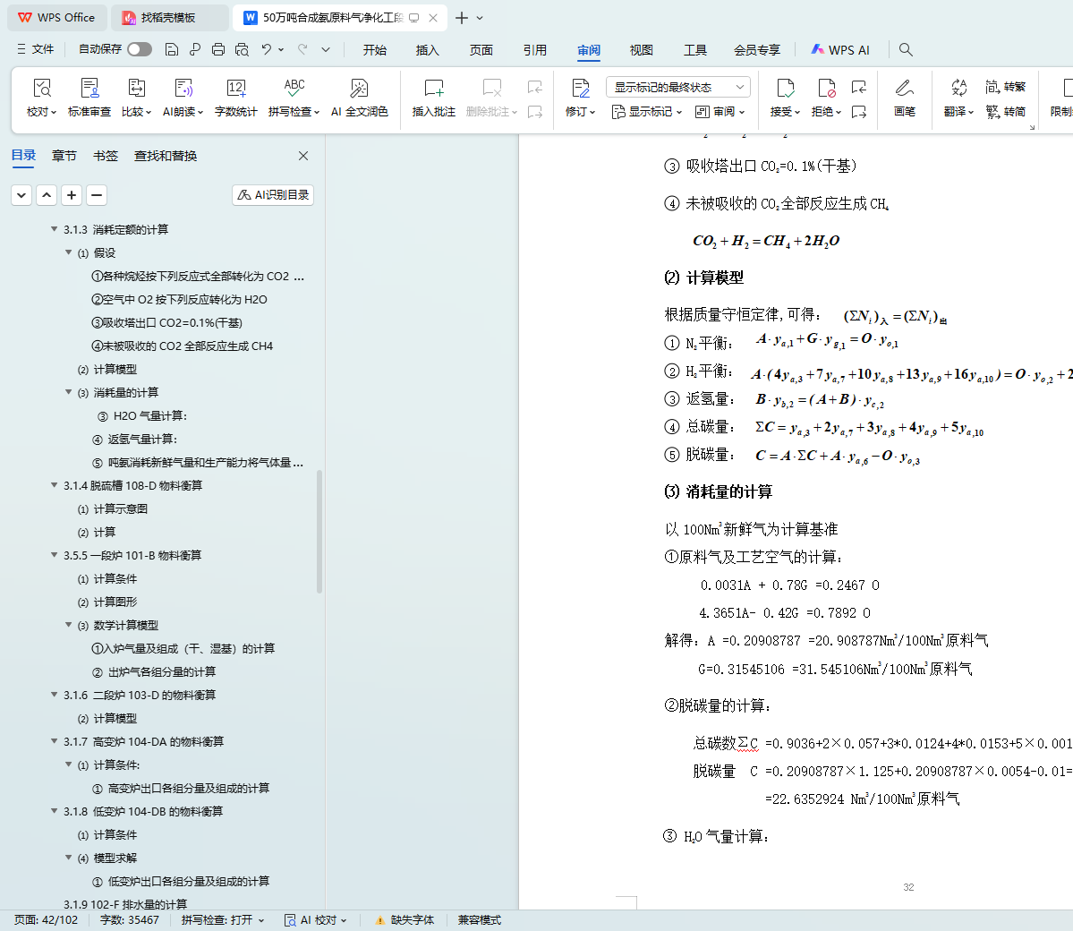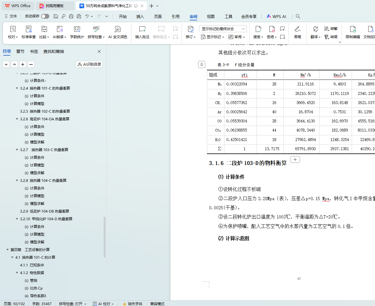 3.1.11 甲烷化炉101-D的物料衡算