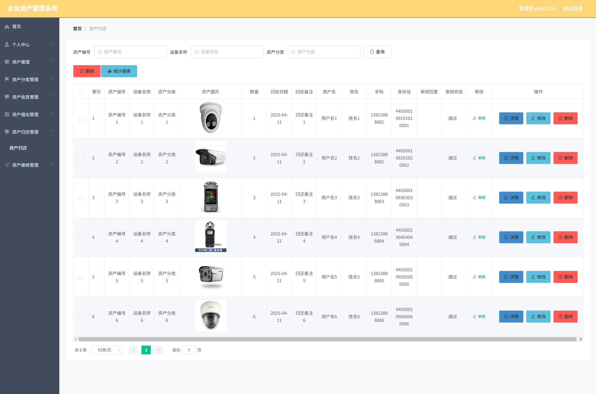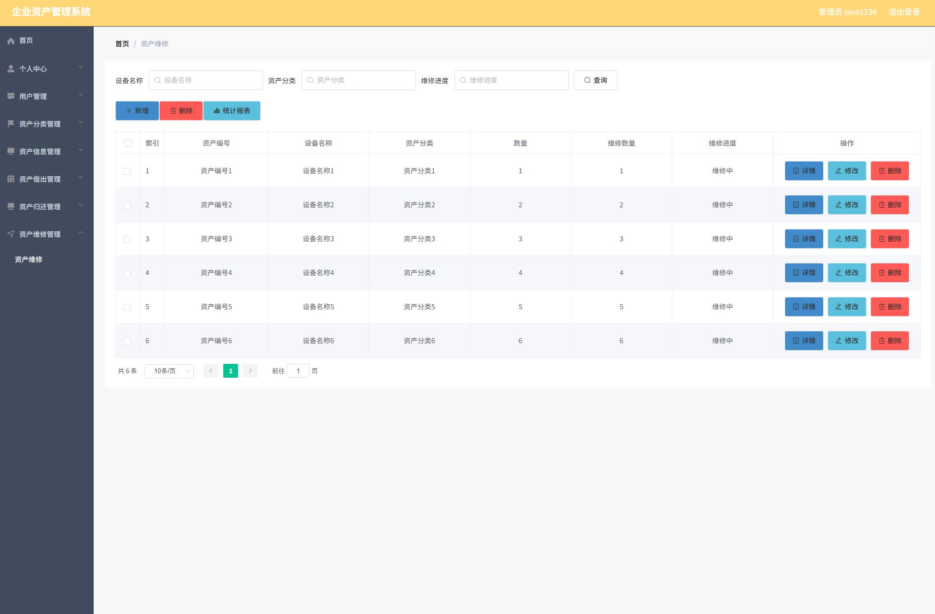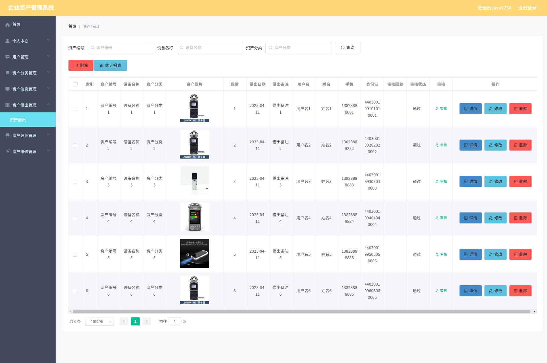 The corporate asset management system administrator functions include personal center, user management, asset classification management, asset information management, asset loan management, asset return management, and asset maintenance management. Users can lend and return assets. So it has a certain practicability.