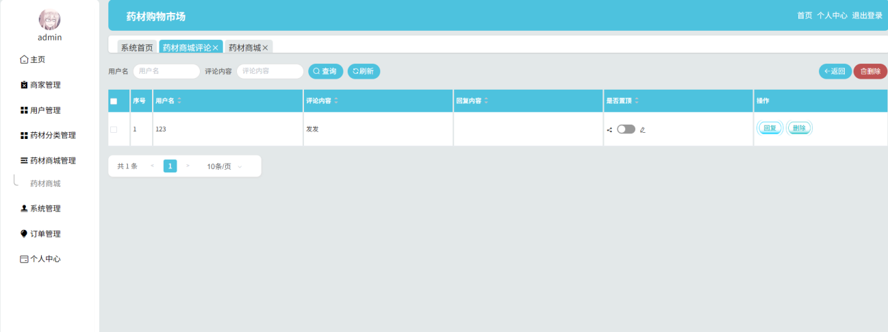 In the early stage of development, through in-depth research on the user needs o, a full featured module system was designed, including login, user management, merchant management, medicinal materials classification, order management, notification announcements, the medicinal materials mall and personal center, etc. In addition, according to the actual needs and responsibilities of different roles, a differentiated role login mechanism was reasonably constructed, and permissions were precisely allocated. By virtue of the precise control of the access rights of each role to the functional modules, not only has the data security been significantly enhanced, but also the maintainability of the system has been effectively improved, laying a solid foundation for the efficient and stable operation of the medicinal materials shopping market.