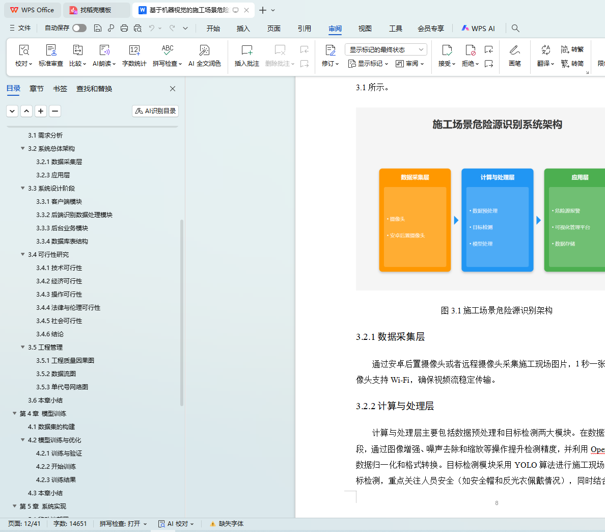 随着建筑行业的发展,施工现场的安全管理问题日益突出,如何实时有效地识别施工现场的危险源,确保工人安全,成为亟待解决的技术难题。本论文提出了一种基于机器视觉的施工场景危险源识别系统,利用目标检测算法YOLO和深度学习框架ncnn,结合边缘计算设备,旨在提升施工现场安全管理的智能化水平。系统通过实时采集施工现场的图像数据,使用YOLO对危险源进行检测与识别,并通过预警机制通知相关人员进行干预,从而降低安全事故发生的概率。