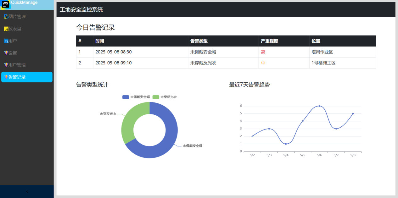 Finally, this paper summarizes the innovative points and shortcomings of the system, and provides prospects for future research. Future research will focus on expanding the system's multi scenario adaptability, improving detection accuracy and intelligence level, and widely applying them in actual construction sites to further enhance the safety and efficiency of building construction.