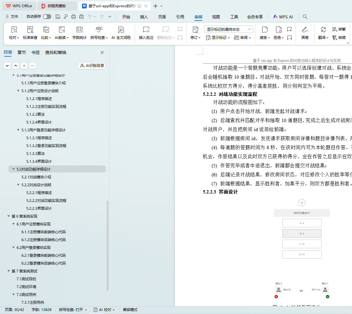 随着微信小程序的快速发展,基于小程序的知识问答类应用在教育和娱乐领域得到了广泛应用。为满足用户在碎片化时间中的学习与互动需求,本文设计并实现了一款基于uni-app与 Express的问答对战微信小程序。系统采用前后端分离架构,前端基于uni-app实现跨平台小程序界面,后端则基于Express构建接口服务,并使用MySQL数据库存储核心数据。系统主要功能包括用户注册登录、题库练习、错题本管理、题目收藏、问答对战、评论互动与反馈建议等。通过模块化设计,确保系统具备良好的扩展性与可维护性。测试结果表明,该系统界面简洁、运行稳定、功能完善,能够为用户提供便捷、高效、有趣的知识答题体验。本项目不仅具备良好的实用性与可拓展性,也为后续基于uni-app和Express技术栈的小程序开发提供了有益参考。
