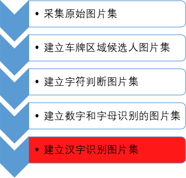 制作方法:从网络下载一个车牌汉字图片集,经过筛选、阈值操作后归一化为24×24的图片,经过程序随机加入缩放、平移、旋转、噪声扩充样本。