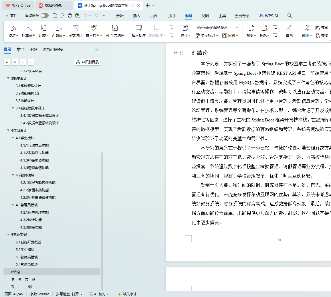 学生考勤管理作为高校信息化建设的重要组成部分,整合了身份识别、出入管理、考勤管理等多种功能。然而,传统系统存在功能单一、数据分散、信息孤岛等问题,严重制约了学校管理效率的提升。针对这些问题,本文基于后端Spring Boot框架和前端Vue技术,设计并实现了一套校园学生考勤系统。系统采用前后端分离架构,后端使用Spring Boot框架构建RESTful API,前端基于Vue实现交互界面,数据库采用MySQL存储数据。系统主要实现了三种角色选择登录:学生可进行互动交流、考勤打卡、请假申请等操作;教师可进行互动交流、管理学生考勤、请假管理等功能;管理员可进行用户管理、考勤信息管理、学生请假申请管理、论坛管理、系统管理等操作。系统测试结果表明,该考勤系统具有良好的稳定性和易用性,各功能模块运行正常,能够满足校园考勤管理的实际需求,为高校智慧校园建设提供了有益探索。