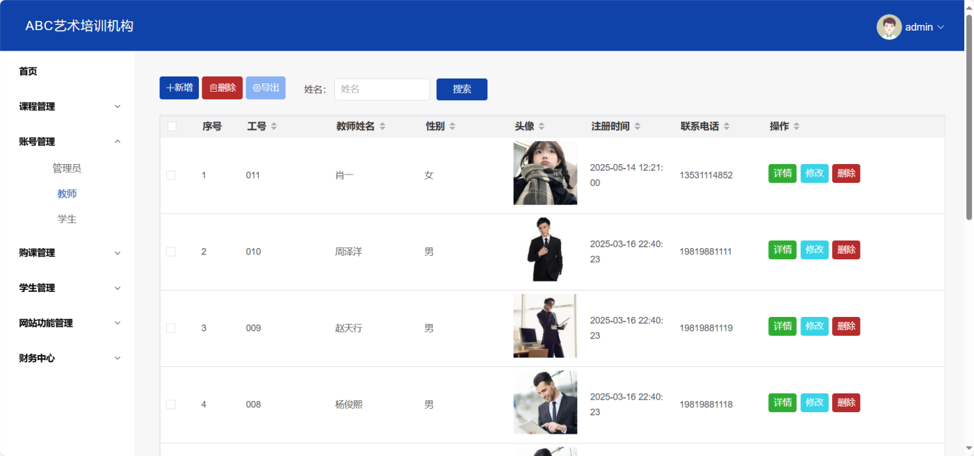 Keywords: art training institution; information management; Java; Spring Boot; MySQL