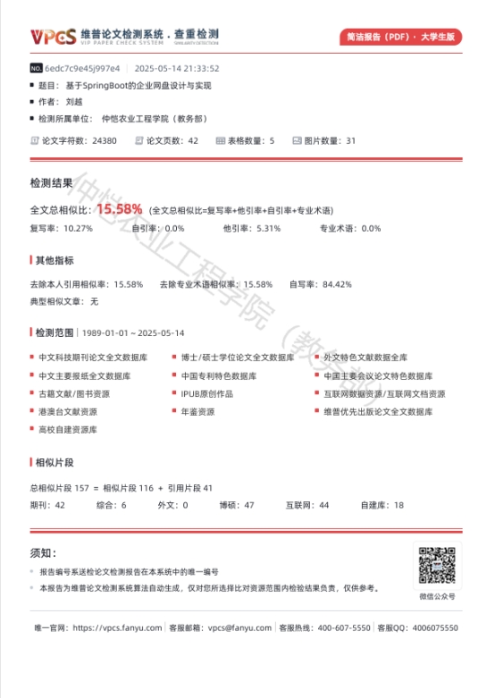毕业论文(设计)查重报告简洁版