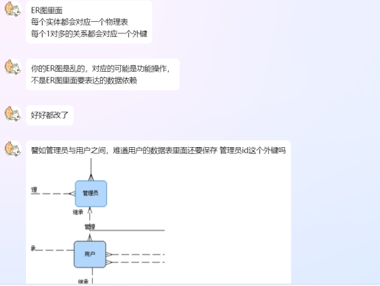 老师指导我论文中的ER图,不要使用visio画图,要使用专业的画图软件,如powerdesigner等软件,对于我绘制的图型不正确会指出错误地方,并重点使用批注在旁边指出。