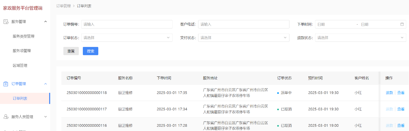 家政服务作为现代生活中不可或缺的一部分,传统的服务模式存在信息不对称、服务效率低、管理不规范等问题。基于上述问题,本文研究开发一个基于Spring Cloud架构的家政服务平台,提供一种高效、便捷的家政服务管理模式。该平台分为运营管理端(PC)、用户端(微信小程序)和服务端(App),基于前端框架uni-app和Vue.js构建用户小程序端和服务人员App端,基于Vue.js构建运营管理端。运营管理端实现了服务管理、服务人员管理、客户管理和订单管理等功能,确保服务的规范化和高效运营。用户端支持用户定位、服务搜索、预约下单支付及评价等功能,为用户提供便捷的家政服务体验。服务端通过App实现,服务人员可进行身份认证、抢单操作、服务记录上传等功能,本文实现的系统具有功能完善、操作简便、扩展性强的优点,能够有效提升家政服务的管理效率和服务质量。