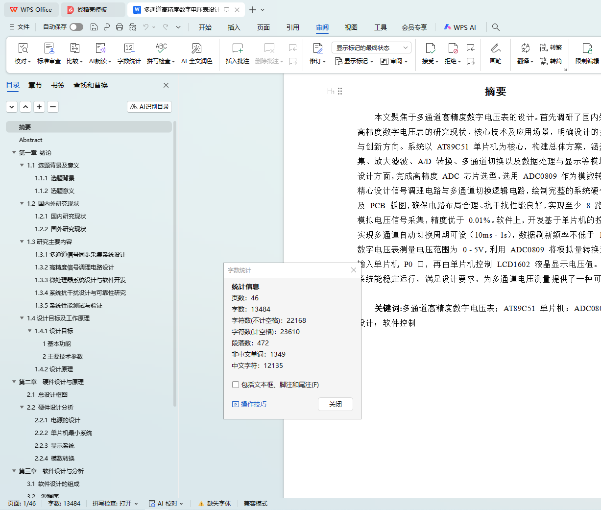 Key words:Multi-channel high-precision digital voltmeter; AT89C51 single-chip microcomputer; ADC0809; Hardware design; Software control