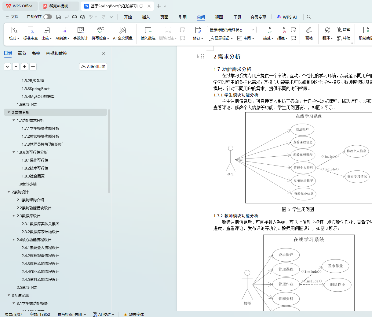 本文以SpringBoot框架为核心技术架构,结合MySQL数据库,构建功能完善、符合需求的在线学习系统。该系统实现用户注册与登录、课程选择与学习、作业提交与管理、成绩分析与统计等核心功能模块,其中用户包含学生、教师、管理员三种角色。学生可以通过系统浏览课程、选择课程、发表和查看评论、修改个人信息等。教师可以发布作业、查看学生进度、参与讨论等。管理员则负责后台管理工作,包括用户管理、课程视频审核与发布等。