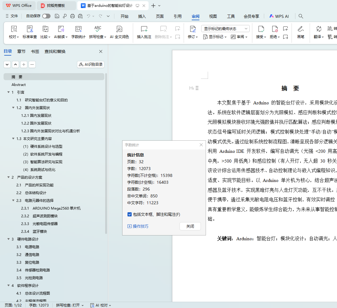关键词:Arduino;智能台灯;模块化设计;自动调光;人体感应