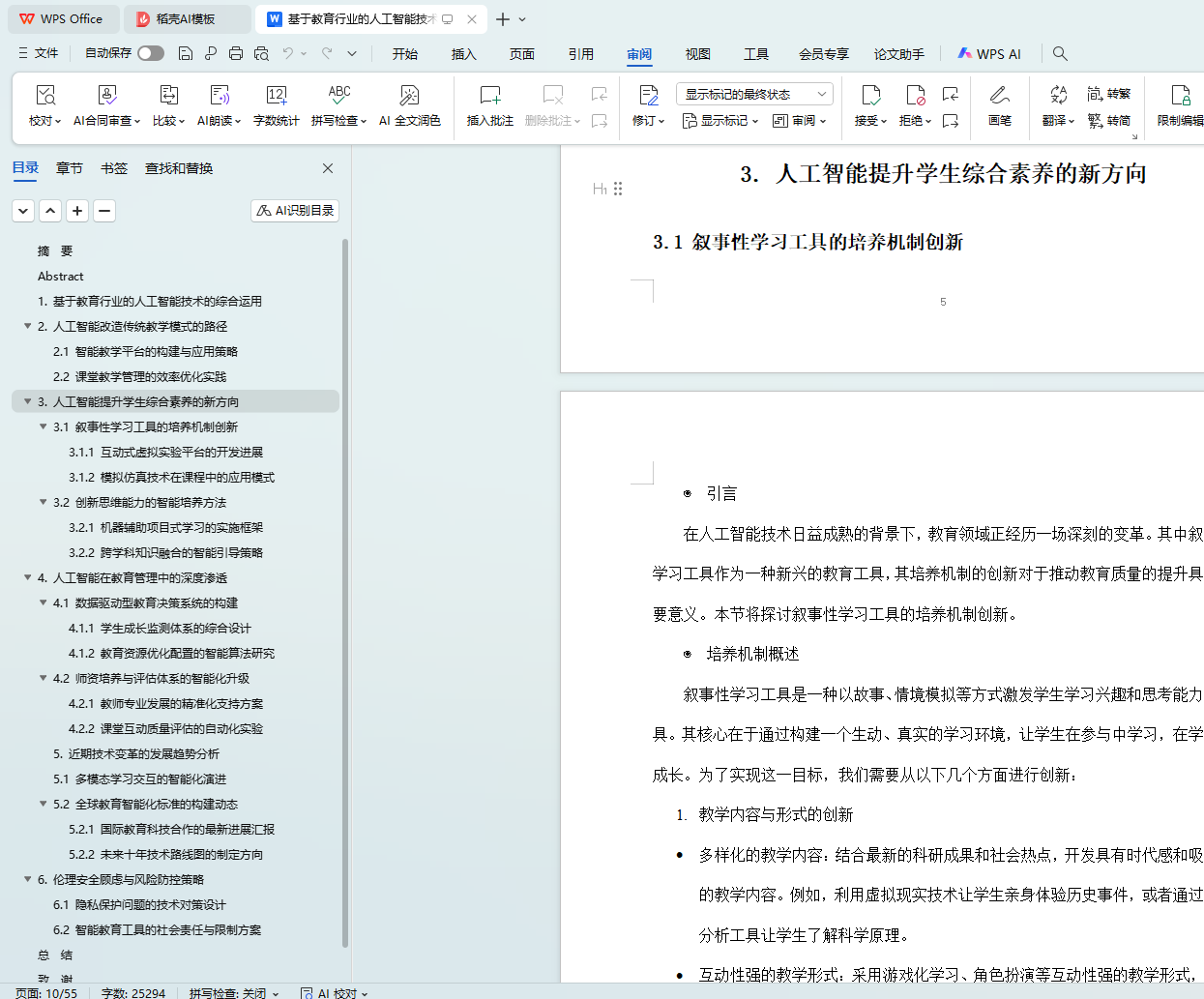 本文聚焦教育行业,对人工智能技术应用现状及趋势展开调查研究。在综合运用方面,人工智能正全方位融入教育领域。它改造传统教学模式,通过构建智能教学平台,优化课堂教学管理效率,为教学带来新活力。在提升学生综合素养上,创新叙事性学习工具培养机制,开发互动式虚拟实验平台,应用模拟仿真技术;同时探索创新思维能力智能培养方法,构建机器辅助项目式学习框架,实施跨学科知识融合智能引导。人工智能还深度渗透教育管理,构建数据驱动型教育决策系统,综合设计学生成长监测体系,研究教育资源优化配置智能算法;并推动师资培养与评估体系智能化升级,提供教师专业发展精准支持方案,开展课堂互动质量评估自动化实验。近期,多模态学习交互智能化演进,全球教育智能化标准构建动态明显,国际教育科技合作取得新进展,未来十年技术路线图制定方向逐渐明晰。然而,人工智能在教育应用中也面临伦理安全顾虑,如隐私保护问题、智能教育工具的社会责任等。针对这些问题,本文设计了相应技术对策,提出社会责任与限制方案,旨在为教育行业合理应用人工智能提供全面参考,促进教育智能化健康、可持续发展。