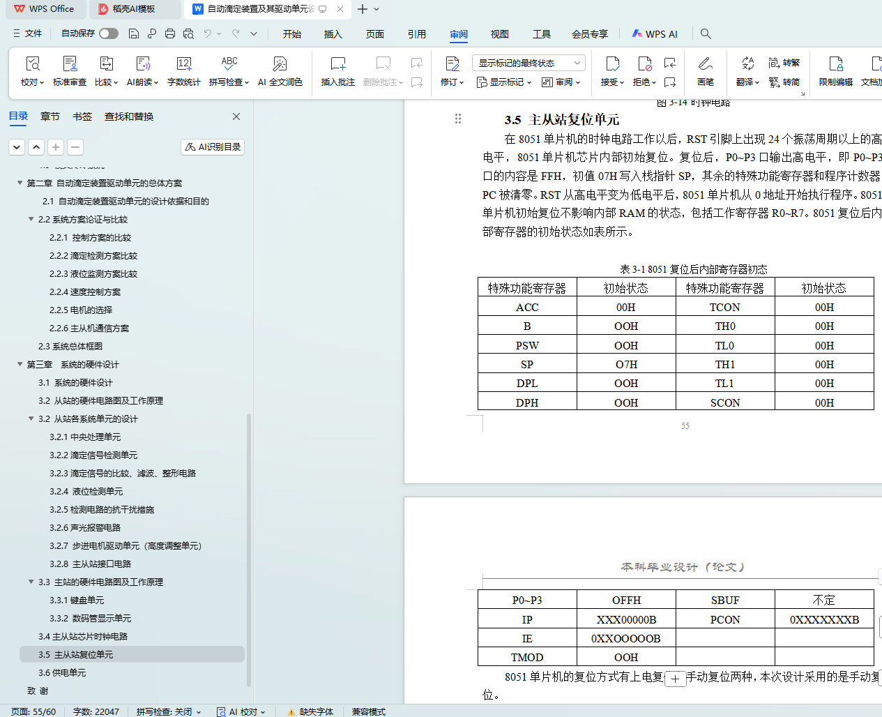 本文围绕自动滴定装置及其驱动单元设计展开研究。在自动滴定装置部分,首先进行制品材料选用分析,接着对装置进行测绘,并阐述成型设备选用,包括注塑机、模架的选择以及模具参数校核。随后拟定模具结构形式,涵盖型腔数量与排列方式确定、分型面选择、侧向分型与抽芯机构分析确定,以及主流道、分流道、浇口、定位圈设计,还涉及成型零部件、导向机构、推出机构和模具冷却系统设计。在自动滴定装置驱动单元部分,明确设计依据和目的,通过系统方案论证与比较,确定控制、滴定检测、液位监测、速度控制方案,选择合适电机并确定主从机通信方案,给出系统总体框图。在系统硬件设计方面,分别阐述从站和主站的硬件电路图及工作原理,详细介绍从站各系统单元设计,如中央处理单元、滴定信号检测单元等,还涉及主从站芯片时钟电路、复位单元和供电单元设计。该设计旨在实现自动滴定装置的高效、精准运行,为相关领域提供一种可行的解决方案。
